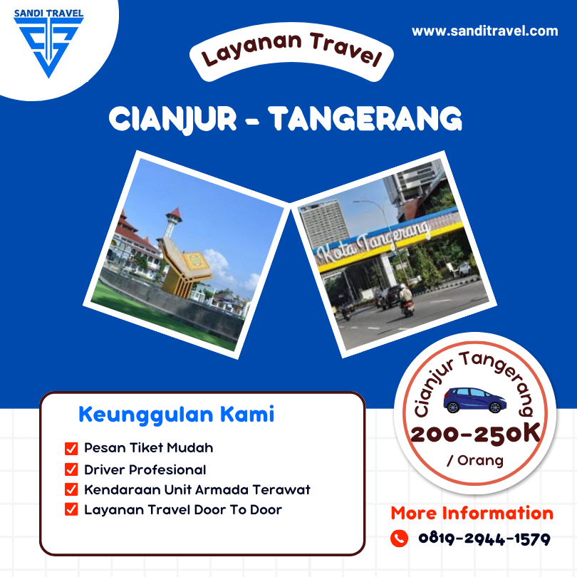 Sandi Tour & Travel adalah layanan transportasi antar-kota yang menghubungkan Cianjur Jakarta, Bekasi, Depok, Bogor Dan Tangerang. Sandi Travel menawarkan armada yang nyaman dan aman untuk perjalanan penumpang, dengan berbagai jadwal keberangkatan yang fleksibel untuk memenuhi kebutuhan pelanggan.